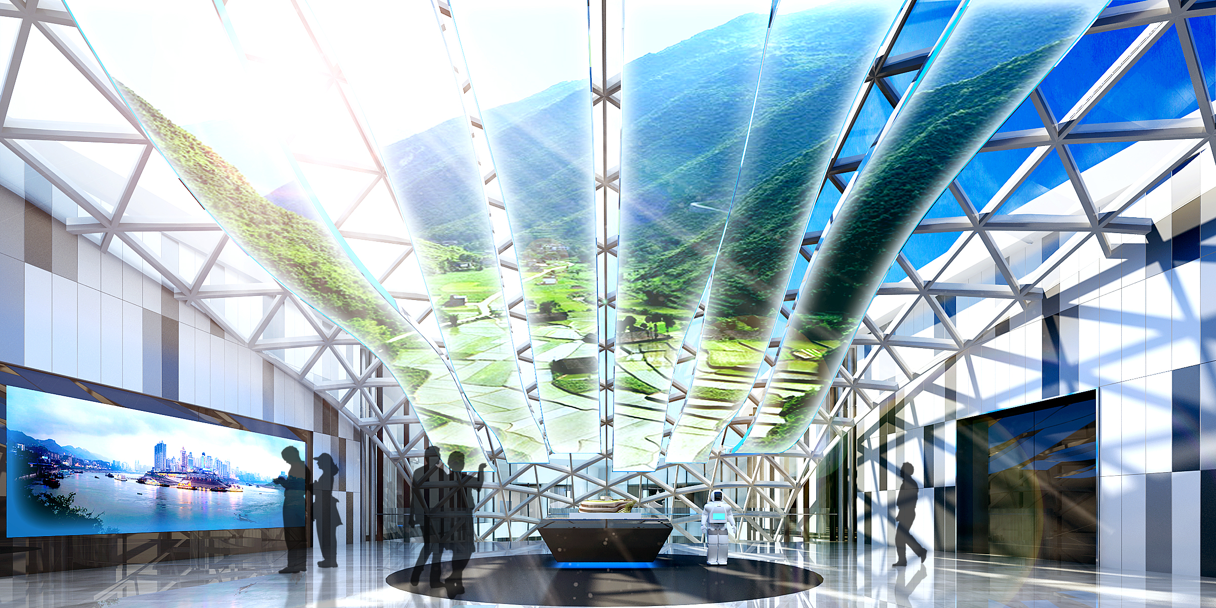 重慶悅來智慧城市展示中心位于重慶市兩江新區(qū)西部片區(qū)中心位置,悅來會(huì)展公園內(nèi)。建筑面積10000平方米,是三星級(jí)綠色建筑。