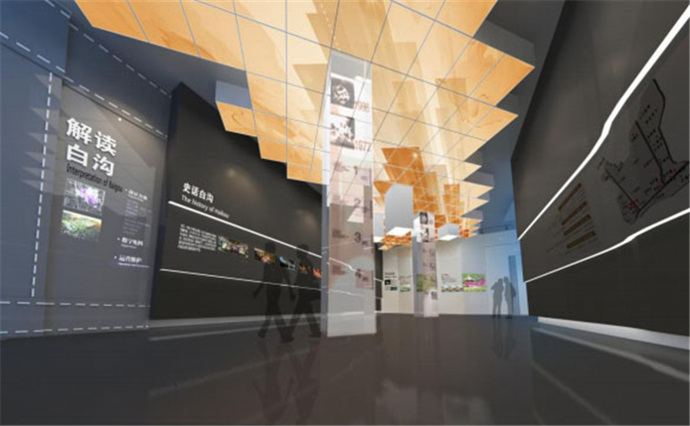 白溝規(guī)劃展覽館布展面積約3500平方米,展館展示區(qū)域共兩層,一層分為序廳、解讀白溝、聚焦白溝、擎畫白溝四部分,二層分為規(guī)劃白溝、實力白溝、筑夢白溝三部分。整個展廳以“和諧·跨越·大白溝”為主題,集城市展覽、規(guī)劃公示、宣傳教育等多功能于一體,展示白溝的城市歷史、建設(shè)成就和未來規(guī)劃等。