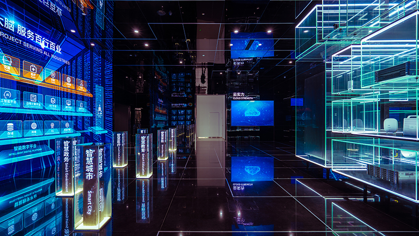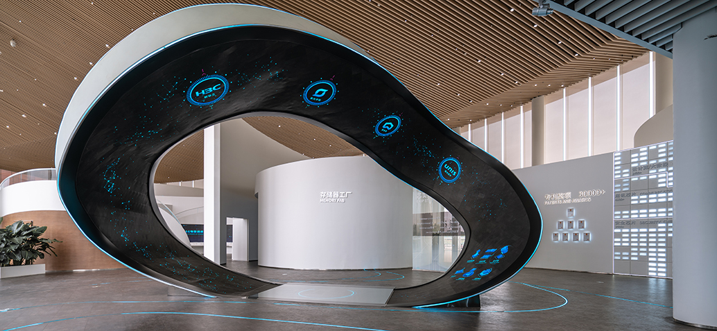 紫光集團(tuán)智慧之環(huán)展示中心位于四川成都,展陳區(qū)域建筑面積1876平方米,由科技紫光、芯云一體、芯片之智、云網(wǎng)之慧、智慧生活、智慧天府六個展廳組成。