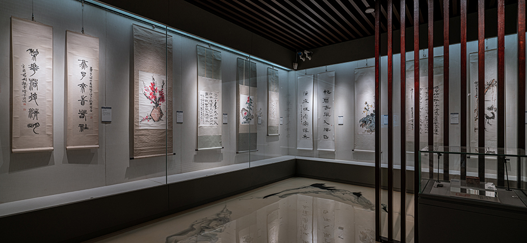 君匋藝術(shù)院展廳陳列的主要內(nèi)容是書(shū)畫(huà)印章。二層展廳設(shè)有展櫥及展柜,用于陳列錢(qián)君匋先生的書(shū)畫(huà)印章,還設(shè)有錢(qián)君匋藝術(shù)生涯陳列室。底層展廳用大展板的形式將六開(kāi)間的展覽大廳分隔成兩間用于陳列巨幅書(shū)畫(huà),兩個(gè)展廳均鋪設(shè)復(fù)合地板,裝修新穎,并裝置了微波動(dòng)態(tài)防盜報(bào)警系統(tǒng),以保證日常需求。