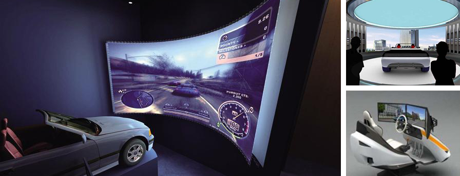 汽車自駕系統(tǒng)利用現(xiàn)代高科技手段如:三維圖像即時生成技術(shù)、汽車動力學(xué)仿真物理系統(tǒng)、大視場顯示技術(shù)(如多通道立體投影系統(tǒng))、六自由度運動平臺(或三自由度運動平臺)、用戶輸入硬件系統(tǒng)、立體聲音響、中控系統(tǒng)等,讓體驗者在一個虛擬的駕駛環(huán)境中,感受到接近真實效果的視覺、聽覺和體感的汽車駕駛體驗。