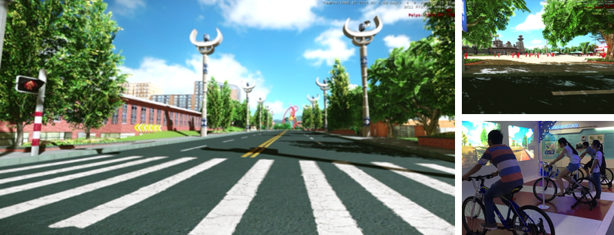 虛擬自行車系統(tǒng)以虛擬漫游技術(shù)為基礎(chǔ),綜合運用了傳感器技術(shù)、DSP控制技術(shù),采用了多線程、非阻塞的數(shù)據(jù)實時通信技術(shù),并通過立體顯示等多通道交互技術(shù)實現(xiàn)了人在虛擬環(huán)境中的漫游,使參與者在由計算機構(gòu)造的虛擬場景中獲得了如同在真實環(huán)境中騎車的體驗是把虛擬漫游技術(shù)應(yīng)用于實際的一個有益嘗試,應(yīng)用前景十分廣闊。