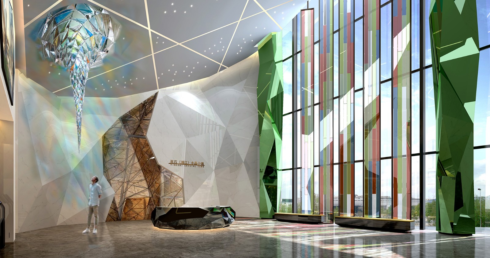 浦江是聞名遐邇的中國水晶之都,水晶小鎮(zhèn)是浦江水晶產(chǎn)業(yè)轉(zhuǎn)型升級的示范區(qū),而小鎮(zhèn)客廳是水晶小鎮(zhèn)之旅的第一站和核心景觀。整個小鎮(zhèn)客廳集接待、洽談、體驗、展示、餐飲、娛樂、休閑等功能于一體,分為地下一層、地上二層,主要設有服務大廳、多功能廳(劇場)、水晶小鎮(zhèn)展示廳、水晶藝術(shù)館、DIY紀念館、水晶博物館、水晶小鎮(zhèn)未來科技體驗館、智能指揮中心、英石浦江(辦公室)以及其他配套設施。建筑總面積約13500平方米,設計總面積約12000平方米。