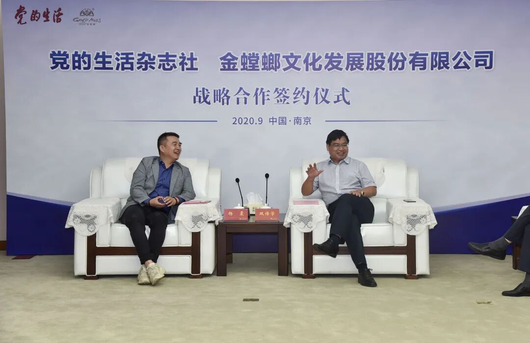 9月22日下午,金螳螂文化公司與《黨的生活》雜志社戰(zhàn)略合作簽約儀式于新華報業(yè)傳媒集團隆重舉行。新華日報社黨委書記、社長雙傳學、新華日報社紀委書記趙準、省國資委第五黨建督導組組長丁誠、《黨的生活》雜志社主編齊雪梅與金螳螂文化發(fā)展股份有限公司董事長楊震一行共同見證了簽約儀式。