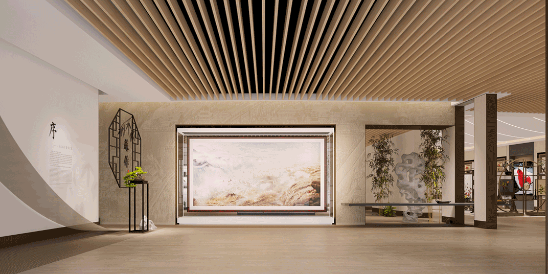 同時,根據(jù)展銷蘇作工藝品特點,綜合運用多媒體、藝術品、立面圖板、輔助展品等形式,全面地傳達展品信息,詮釋蘇工蘇作之精巧,傳播生活美學。