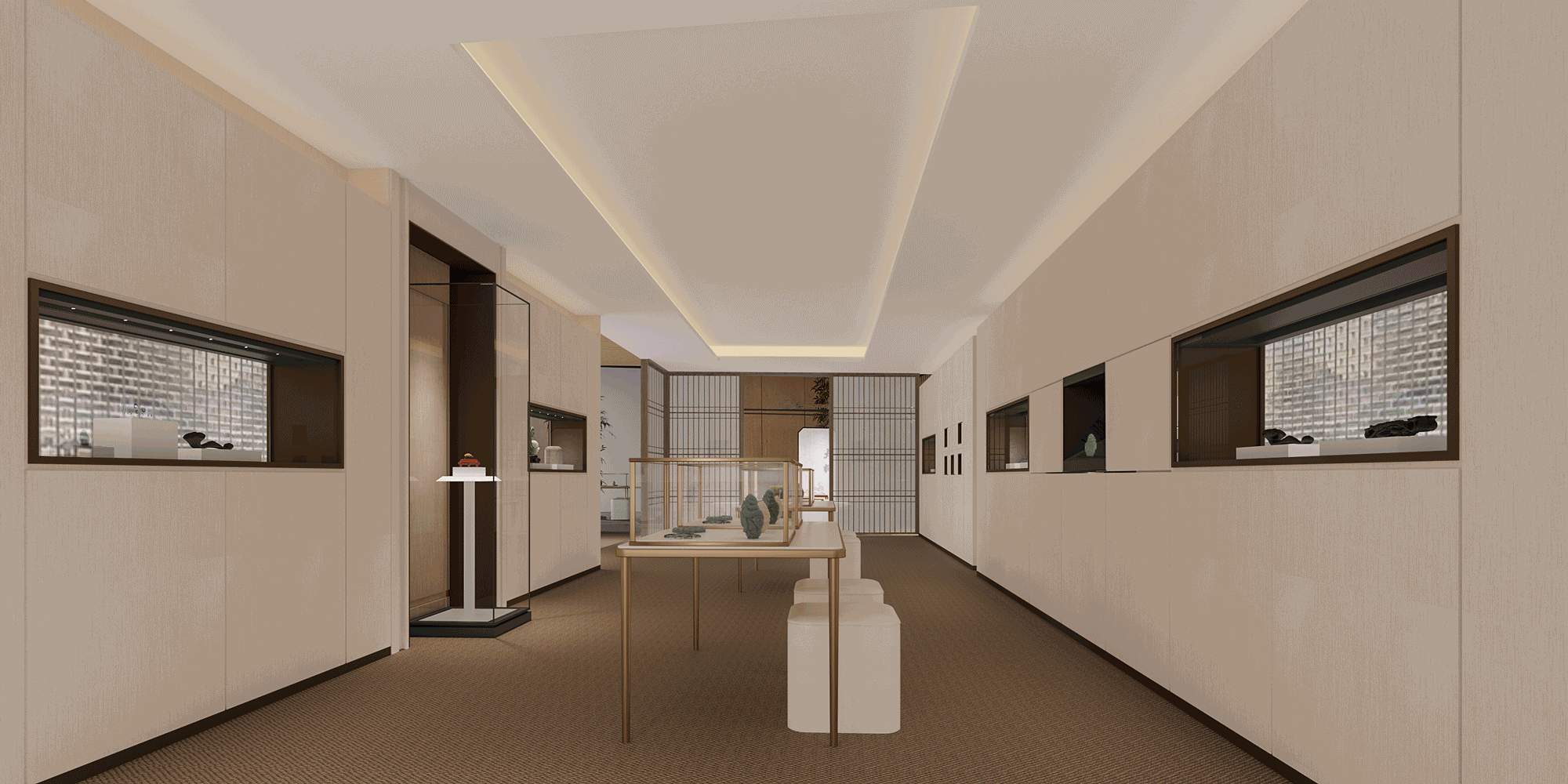 我們運用古典園林營造手法進行藝術化空間處理,并結合層次清晰、雅靜自然的光環(huán)境營造,展現(xiàn)出江南文化特有的意境與風韻,契合展銷主題。