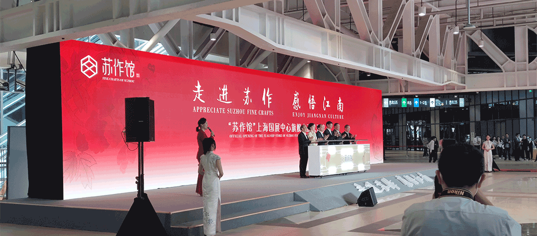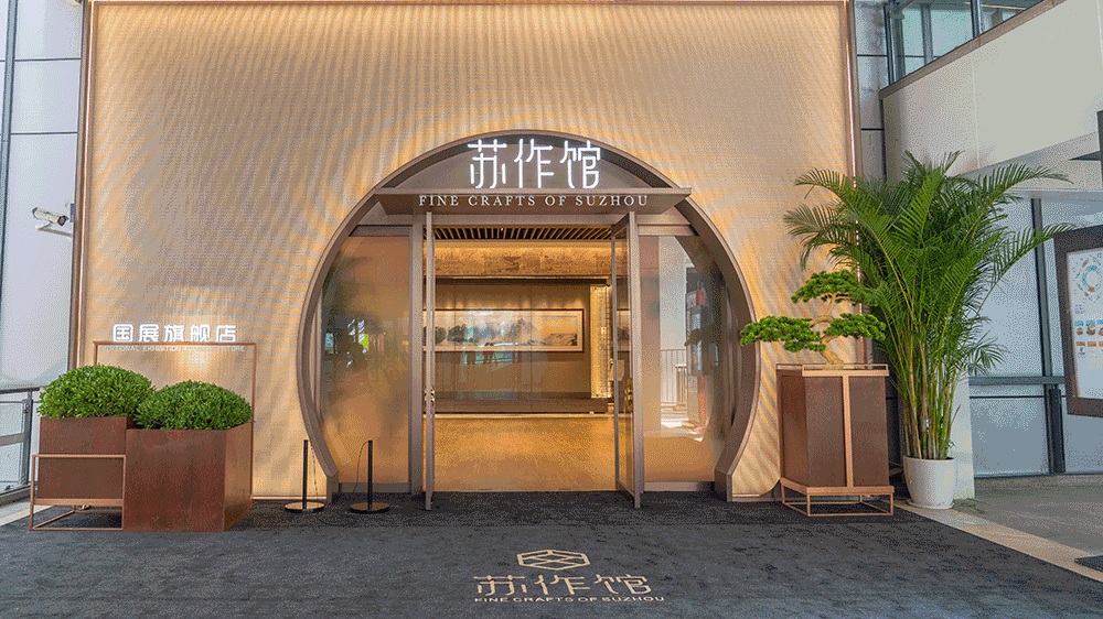 Gold Mantis 金螳螂文化傾力打造 展/現(xiàn)/江/南/文/化/新/價/值 (陶欣宇 展館完工視頻) 蘇作匠心 蘇作館正式開館 今天(5月26日),“蘇作館”上海國展中心旗艦店正式開館,12個蘇作門類的200多件藝術(shù)作品精彩亮相。江蘇省委常委、蘇州市委書記許昆林,中國工藝美術(shù)協(xié)會常務(wù)副會長、中國工藝(集團(tuán))副董事長張紅出席活動并致辭。上海市副市長陳通,蘇州市人大常委會主任陳振一,市政協(xié)主席周偉強出席活動。 江蘇省委常委、蘇州市委書記許昆林在致辭中代表蘇州市委市政府對上海及社會各界長期以來給予蘇州發(fā)展的大力支持表示感謝。 許書記表示,設(shè)立蘇作館就是要依托上海國展中心這個世界級“展廳”,加快打造展示江南文化魅力、宣傳蘇州城市形象的重要窗口和展銷蘇工蘇作的最高級平臺。 蘇州將以實施文化產(chǎn)業(yè)倍增計劃為抓手,深入挖掘“蘇工蘇作”豐富內(nèi)涵,努力將“蘇作館”打造成為蘇工蘇作精品走出蘇州、面向全球的“一號店”,讓“蘇作館”成為展示蘇州千年古城燦爛輝煌的最美窗口。 儀式后,嘉賓代表共同參觀了“蘇作館”上海國展中心旗艦店。 商務(wù)部駐南京特派員王選慶,商務(wù)部進(jìn)博局副局長、國展中心董事長孫成海,上海虹橋商務(wù)區(qū)管委會黨組書記、常務(wù)副主任閔師林,日本國駐上海大使銜總領(lǐng)事磯俁秋男,大韓民國駐上海總領(lǐng)事金勝鎬,意大利駐滬總領(lǐng)事陳琪以及上海市、江蘇省有關(guān)部門負(fù)責(zé)同志,蘇州市領(lǐng)導(dǎo)黃愛軍、金潔、顧海東、楊知評、王飏,市政府秘書長周偉,各縣級市(區(qū))和市有關(guān)部門主要負(fù)責(zé)同志,首批入駐“蘇作館”的中國工藝美術(shù)大師、非遺傳承人代表等參加活動。 金螳螂文化董事長楊震陪同參觀 金螳螂文化作品得到領(lǐng)導(dǎo)們的高度贊賞。金螳螂文化通過“蘇作館”項目的精心打造,傳承與發(fā)揚江南文化,助力打響江南文化品牌。 部分新聞素材來源:蘇州新聞、蘇州日報公眾號 “最江南”的設(shè)計 助推江南文化 “蘇作館”坐落于上海國家會展中心,場館面積1200平米,歷時五個月精心打造。館內(nèi)規(guī)劃設(shè)計有蘇宮區(qū)、大師精品區(qū)、大師衍生品區(qū)、蘇工蘇作演藝區(qū)、直播間等功能區(qū)。 首批展銷作品涵蓋蘇繡、緙絲、玉雕、核雕、蘇扇、明清家具、蟋蟀盆、鳥籠、仿古銅器等12個蘇作門類,收錄了姚建萍、邢偉中、鐘錦德、蔣喜、鄒英姿、錢小萍、楊曦、姚惠芬、周建明、宋水官等36位工藝美術(shù)大師和非遺傳承人的200多件藝術(shù)精品。 首批展銷作品:200多件藝術(shù)精品 經(jīng)過600余年的歲月洗禮,蘇工蘇作依舊光輝燦爛。金螳螂文化運用古典園林營造手法進(jìn)行藝術(shù)化空間處理,提煉富于特色的江南自然及人文元素,通過現(xiàn)代美學(xué)的整體設(shè)計,充分展現(xiàn)“雅、精、細(xì)、巧”的蘇作共性。 蘇作館:多媒體生動展現(xiàn)蘇作精巧 “蘇作館”將堅持傳承弘揚蘇作文化,拓展深耕蘇作市場,積極主動融入長三角一體化發(fā)展戰(zhàn)略、深度對接上海,用好進(jìn)博會等各類大型展會舉辦、人流量大等優(yōu)勢,加強與互聯(lián)網(wǎng)頭部平臺的合作,積極面向國內(nèi)、國際市場集中展銷蘇工蘇作藝術(shù)精品。