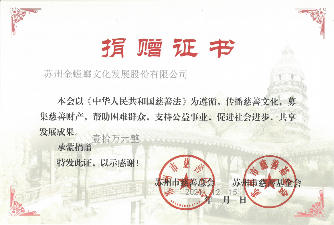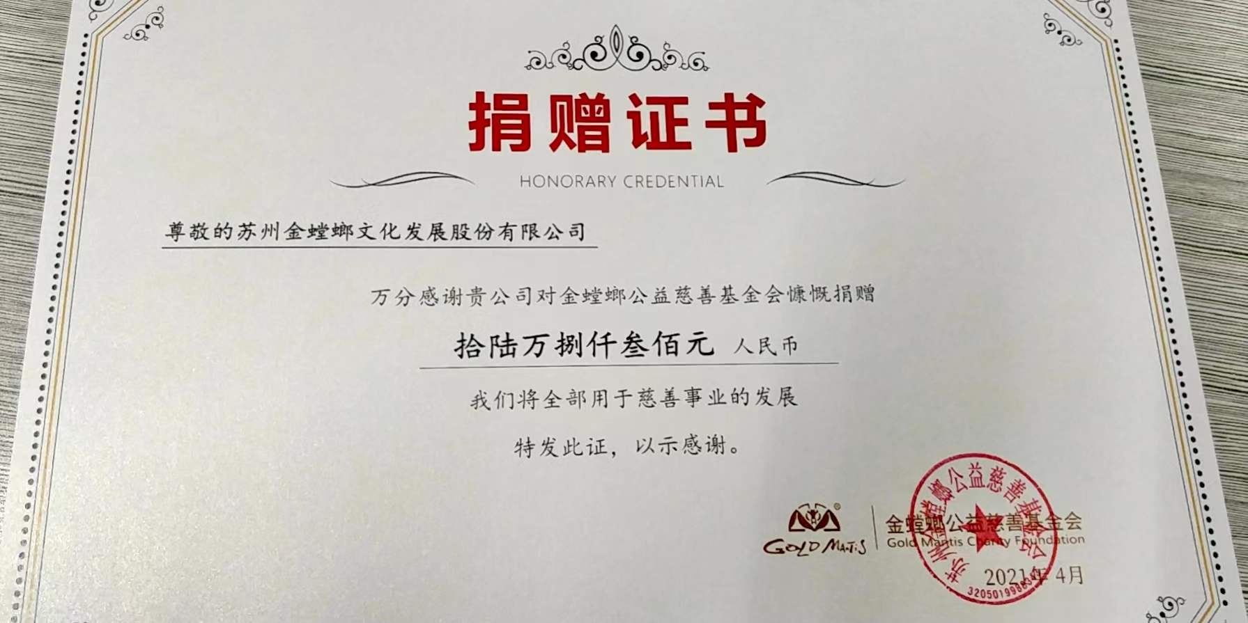 金螳螂文化在行動(dòng) 傳播慈善文化,幫助困難群眾,支持公益事業(yè),促進(jìn)社會(huì)進(jìn)步,共享發(fā)展成果。點(diǎn)滴善行匯聚江海,盡綿薄之力,擔(dān)社會(huì)責(zé)任。 愛(ài)心傳遞 Charity ??? 贈(zèng)人玫瑰,手留余香 ??部分證書 01 青山綠水就是金山銀山,保護(hù)地球從我們做起。近日,蘇州金螳螂文化發(fā)展股份有限公司向蘇州市慈善基金會(huì)捐贈(zèng)10萬(wàn)元,用于支持蘇州市垃圾分類與環(huán)保公益項(xiàng)目“零碳家園公益基金”。 02 讓善意的種子生根發(fā)芽,金螳螂文化每年組織員工愛(ài)心捐款。2021年籌集善款16.83萬(wàn)元,全額捐贈(zèng)給金螳螂公益慈善基金會(huì),助力慈善事業(yè)的發(fā)展。 03 金螳螂文化工會(huì)每年開展困難職工幫扶和走訪、慰問(wèn),幫助有需求的伙伴走出困境,面向更好的生活。 在金螳螂文化這個(gè)平臺(tái),我們同頻共振,攜手成長(zhǎng)。公司對(duì)在職員工實(shí)行就餐補(bǔ)貼、節(jié)日福利、生日紅包、免費(fèi)體檢、走訪慰問(wèn)等;對(duì)項(xiàng)目一線員工夏送清涼、冬送溫暖;同時(shí)開展豐富多彩的團(tuán)建拓展、考察交流活動(dòng),以健全的員工福利制度,力求打造幸福企業(yè)。 04 多年來(lái),金螳螂文化重視校企合作以及創(chuàng)新研發(fā),與上海大學(xué)、上海工程技術(shù)大學(xué)、蘇州大學(xué)、西交利物浦大學(xué)、南京藝術(shù)學(xué)院等院校建立了深度的產(chǎn)業(yè)研合作。 國(guó)際博物館協(xié)會(huì)國(guó)際博物館研究與交流中心(ICOM-IMREC)揭牌,金螳螂文化作為“上海大學(xué)教育發(fā)展基金會(huì)·國(guó)際文博教育基金”捐贈(zèng)企業(yè)之一,積極支持文博產(chǎn)業(yè)發(fā)展。 1:“上海大學(xué)教育發(fā)展基金會(huì)·國(guó)際文博教育基金”捐贈(zèng) 2:“室內(nèi)設(shè)計(jì)6+”聯(lián)合畢業(yè)設(shè)計(jì)(實(shí)驗(yàn)組) 3:與西交利物浦大學(xué)達(dá)成戰(zhàn)略合作 4:“姑蘇八點(diǎn)半 夜享悅高新”沉浸式產(chǎn)業(yè)研討會(huì) 5:與上海工程技術(shù)大學(xué)中韓多媒體設(shè)計(jì)學(xué)院合作簽約 6:與南京藝術(shù)學(xué)院進(jìn)行校企合作洽談 凝聚慈善力量,履行企業(yè)社會(huì)責(zé)任。金螳螂文化將持續(xù)投身公益事業(yè),以責(zé)任之心助力事業(yè)發(fā)展,真誠(chéng)回饋社會(huì),身體力行為社會(huì)創(chuàng)造更大的價(jià)值。