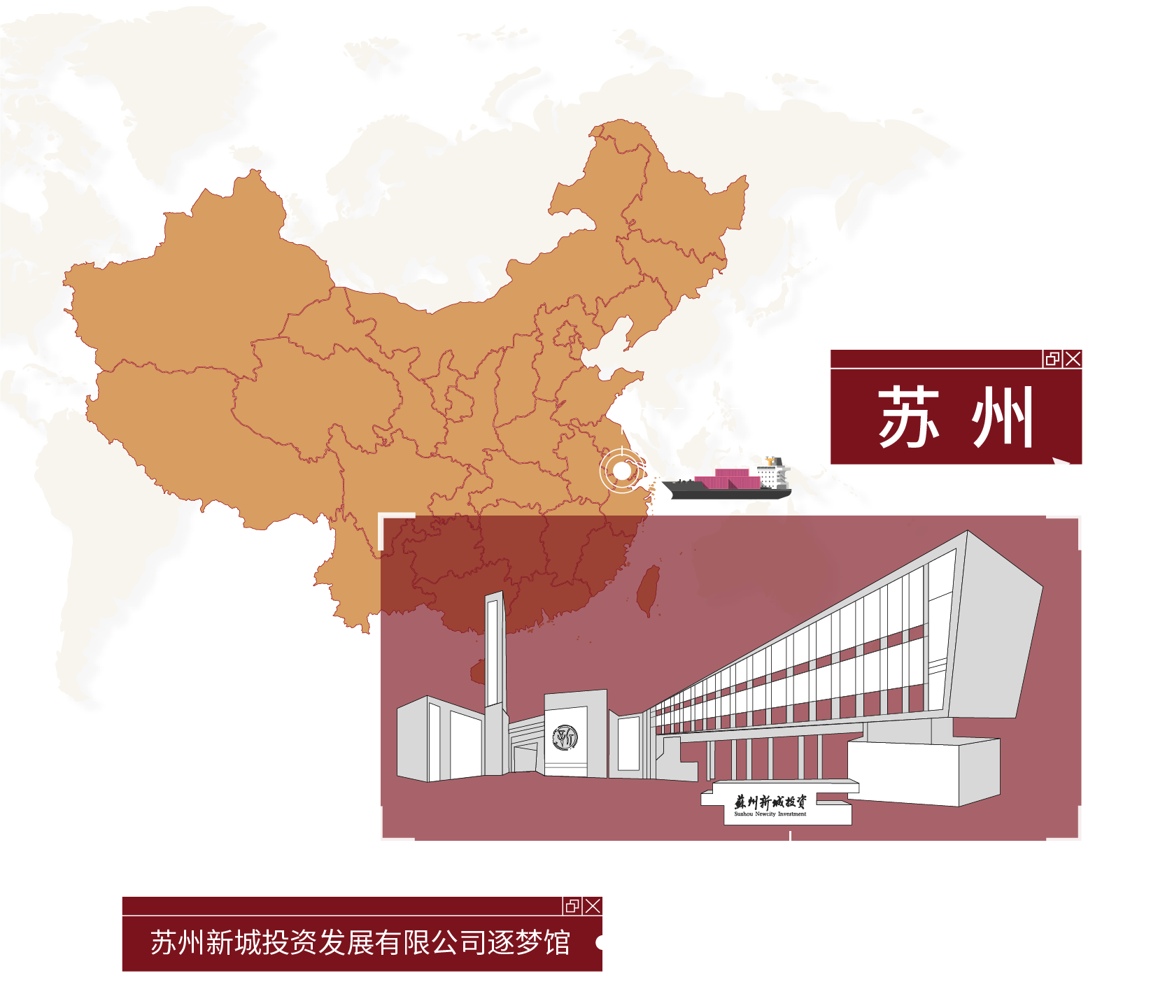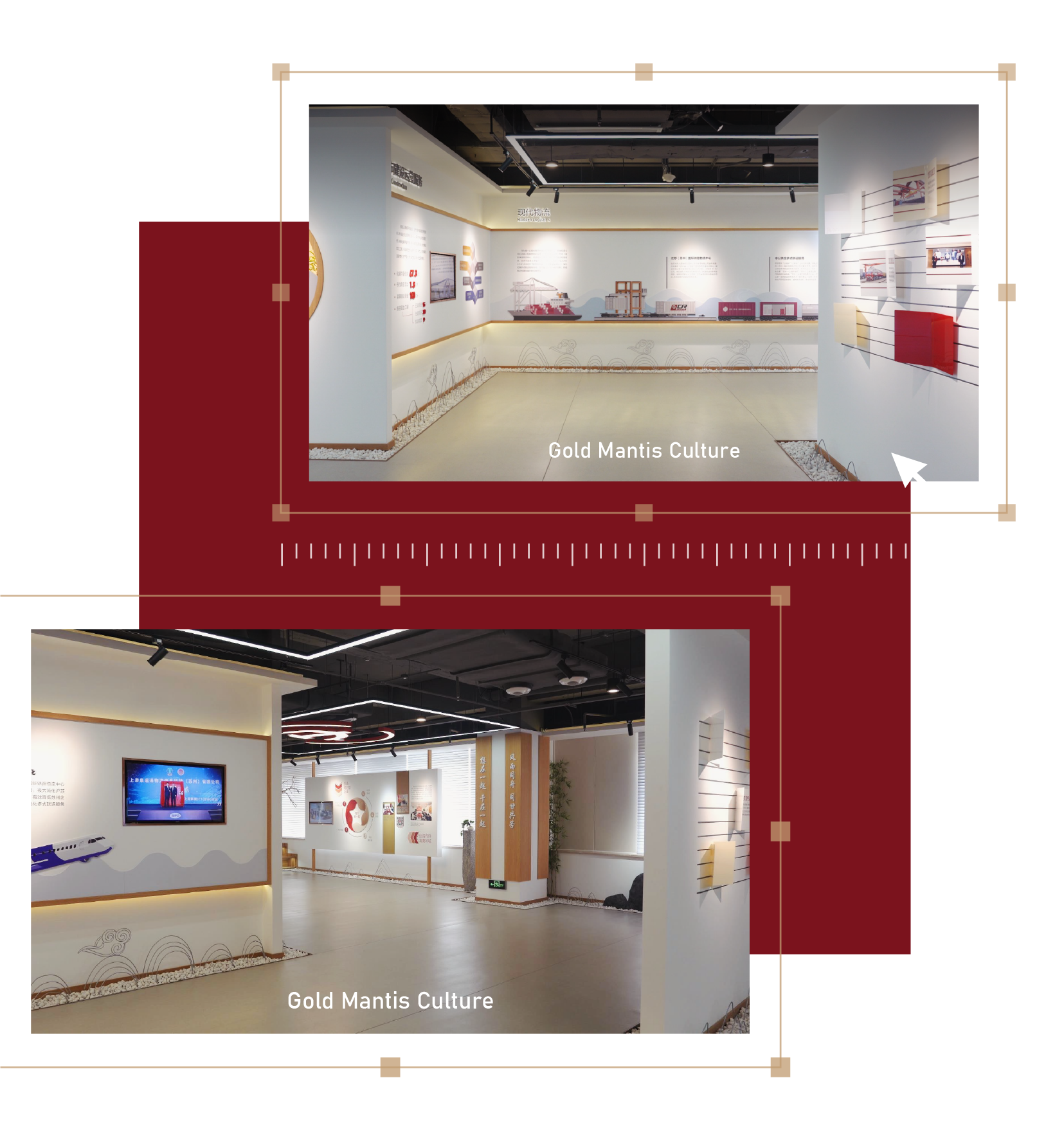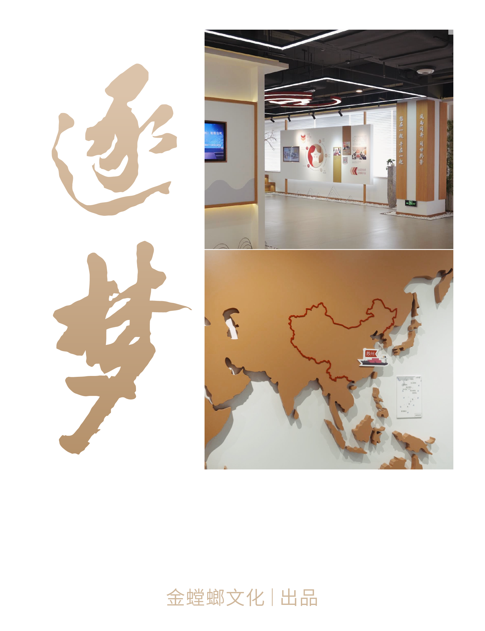 一輛輛貨車有序駛過 窗外物流中心各色集裝箱堆疊 在新城黨建綜合陣地 竹影搖曳,木色溫潤 細(xì)細(xì)述說新城逐夢發(fā)展之旅 蘇州新城投資發(fā)展有限公司是蘇州市國資委管理的市屬國有企業(yè)。 公司以姑蘇平江、滄浪、金閶三新城開發(fā)建設(shè)為起點,積極搶抓“一帶一路”、長江經(jīng)濟(jì)帶、長三角區(qū)域一體化、自貿(mào)區(qū)等重大戰(zhàn)略疊加機(jī)遇,逐步形成城市建設(shè)、運營、服務(wù)和現(xiàn)代物流兩大主業(yè)。 金螳螂文化出品蘇州新城投資發(fā)展有限公司逐夢館,承載黨的文化,延續(xù)并傳遞企業(yè)精神。 設(shè)計中融入中式元素與企業(yè)特色符號,定制化呈現(xiàn)不一樣的黨建綜合陣地。 逐夢館由序廳、主責(zé)主業(yè)、新城黨建、未來展望幾個部分組成,以鮮明的市黨委精神為主線,貫穿場館的理念、視覺、環(huán)境、行為、文化、構(gòu)建和諧統(tǒng)一的文化體系。 金螳螂文化設(shè)計團(tuán)隊通過分析蘇州市的地域文化和人文精神,風(fēng)土風(fēng)貌,從中挖掘所在地區(qū)的文化屬性。 創(chuàng)新設(shè)置時間軸互動展項,轉(zhuǎn)動手柄即可直觀了解企業(yè)大事記,回顧企業(yè)發(fā)展歷程。 在介紹現(xiàn)代物流業(yè)版塊,運用滑軌移動屏清晰闡釋企業(yè)的業(yè)務(wù)構(gòu)成。 新城新起點,共創(chuàng)新發(fā)展。從江南水鄉(xiāng)到三秦大地,金螳螂文化為博物館、規(guī)劃館、科技館、美術(shù)館、城市文化館、主題樂園、歷史街區(qū)等客戶提供空間環(huán)境藝術(shù)策劃、設(shè)計、多媒體與場景藝術(shù)創(chuàng)作、布展施工整體解決方案,詮釋空間故事,彰顯文化價值。