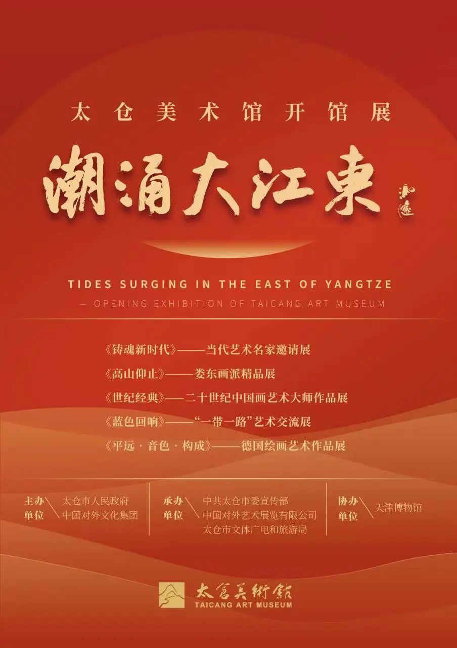 “潮涌大江東——太倉美術(shù)館開館展”由太倉市人民政府和中國對外文化集團(tuán)共同主辦,共分為5個(gè)單元,分別是“鑄魂新時(shí)代——當(dāng)代藝術(shù)名家邀請展”“高山仰止——婁東畫派精品展”“世紀(jì)經(jīng)典——二十世紀(jì)中國畫藝術(shù)大師作品展”“藍(lán)色回響——‘一帶一路’藝術(shù)交流展”“平遠(yuǎn)?音色?構(gòu)成——德國繪畫藝術(shù)作品展”。