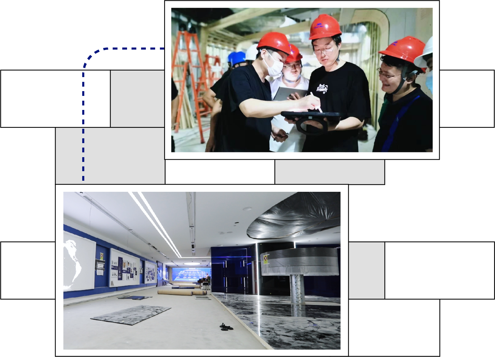從策劃設(shè)計(jì)到落地施工,金螳螂文化項(xiàng)目團(tuán)隊(duì)全身心投入,全過程把控,總裁曹永輝多次前往項(xiàng)目現(xiàn)場(chǎng)考察,針對(duì)施工的進(jìn)度與質(zhì)量等提出指導(dǎo)意見,推進(jìn)項(xiàng)目順利實(shí)施。