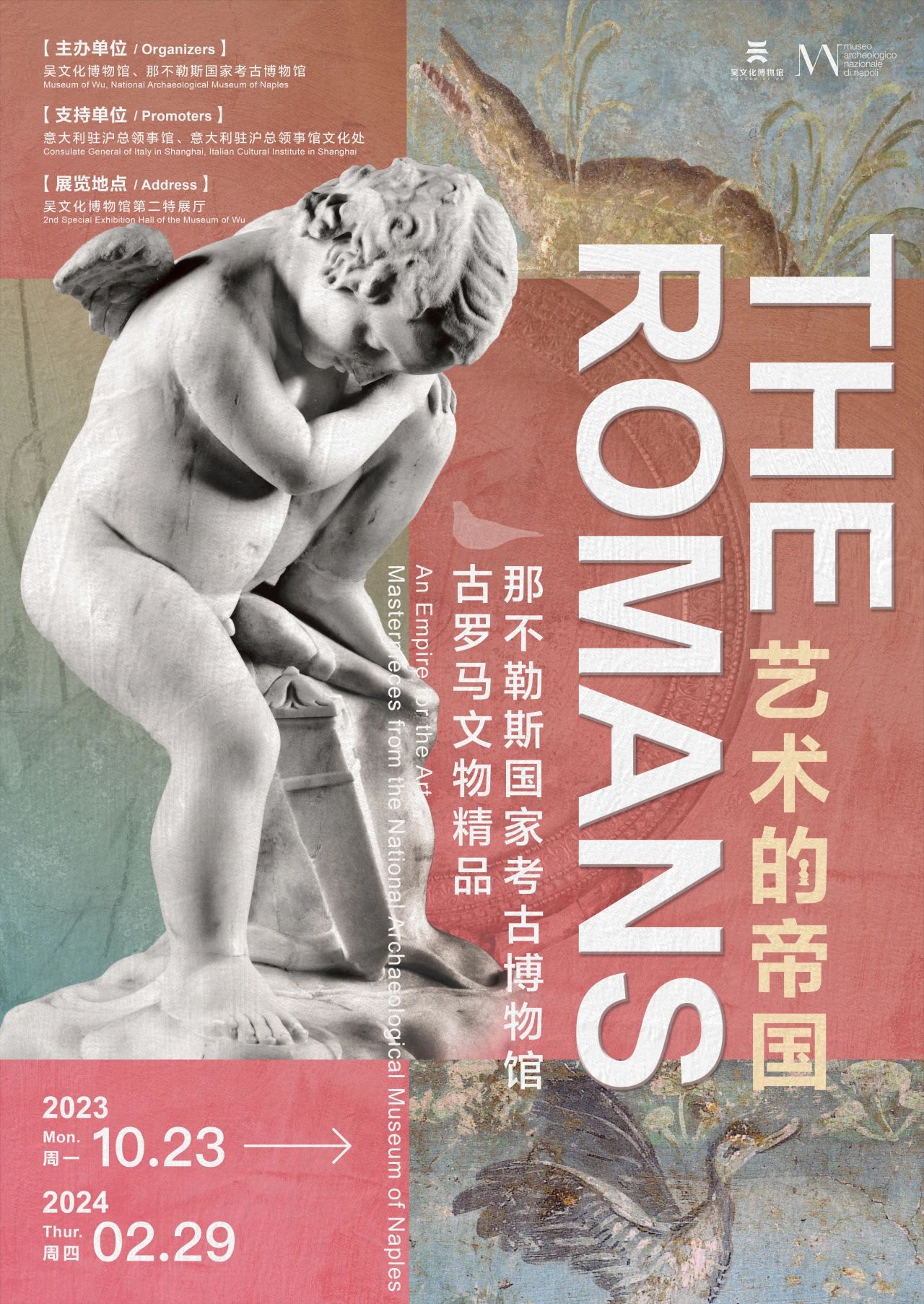 穿越千年,跨越山海 古羅馬時(shí)期的遺珍向我們揮手 璀璨的古羅馬文明向我們走來(lái) 吳文化博物館年度跨境大展 “藝術(shù)的帝國(guó)——那不勒斯國(guó)家考古博物館 古羅馬文物精品” 正式開(kāi)幕 10月23日,“藝術(shù)的帝國(guó)——那不勒斯國(guó)家考古博物館古羅馬文物精品”特展開(kāi)幕式在吳文化博物館舉行。這是繼2022年成功舉辦“伊特魯里亞人——古代意大利的貴族”展覽后,吳文化博物館與那不勒斯國(guó)家考古博物館的再次合作。 本次展覽共展出來(lái)自古羅馬文明的代表性文物98件/套,包括法爾內(nèi)塞收藏的藏品和出土自赫庫(kù)蘭尼姆、龐貝古城的珍貴文物,囊括雕像、銀器、玻璃器、濕壁畫(huà)、馬賽克等多種藝術(shù)形式。 本次特展分為四個(gè)單元,從古羅馬藝術(shù)、人物肖像、色彩運(yùn)用、技術(shù)等方面展開(kāi)闡釋,帶領(lǐng)大家遍覽古羅馬文明的多重面貌,并重現(xiàn)古羅馬文明的輝煌與繁榮。 羅馬古跡遠(yuǎn)渡重洋來(lái)到我們眼前,為我們展現(xiàn)了古羅馬文明對(duì)美的理解和對(duì)美的運(yùn)用,讓兩大文明在兩千年后的今天在展廳再一次相遇。 金螳螂文化項(xiàng)目團(tuán)隊(duì)將古羅馬歷史的恢弘感融入展陳設(shè)計(jì),巧妙運(yùn)用光與影,力圖在有限的展覽空間中呈現(xiàn)無(wú)限延伸的文化之美。 展覽時(shí)間:2023.10.23-2024.2.29 展覽地點(diǎn):吳文化博物館第二特展廳