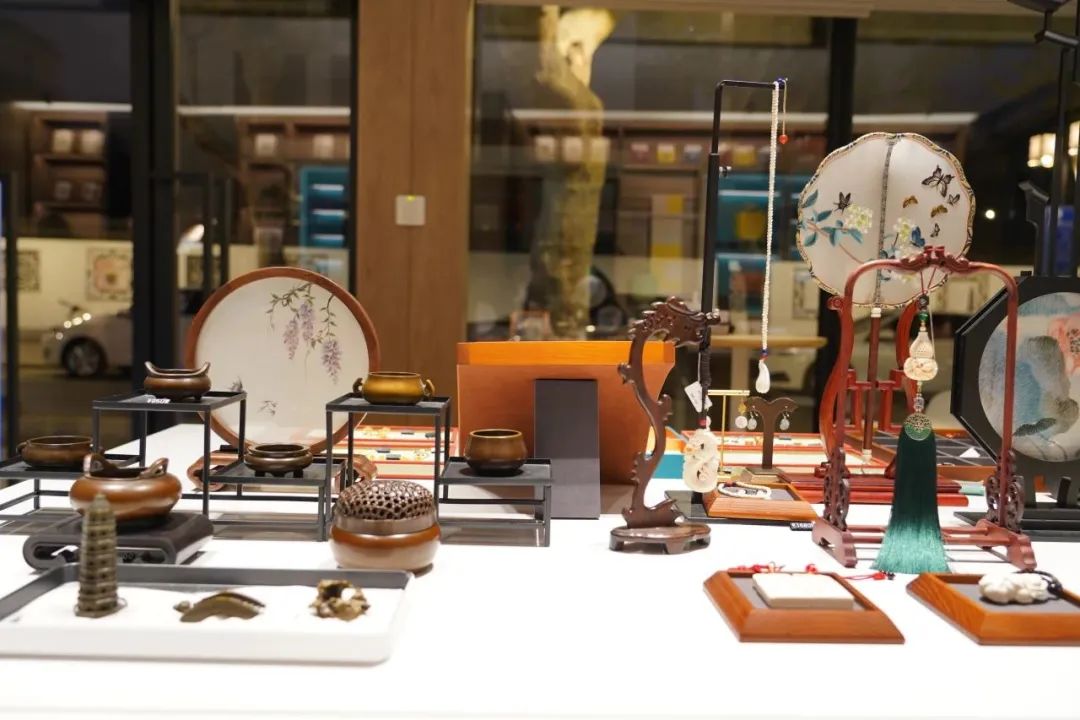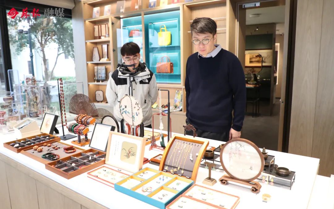 主要集中展示和銷售蘇繡、緙絲、宋錦、木雕、玉雕、核雕、蘇扇、桃花塢木刻年畫、蟋蟀盆、蘇式鳥籠等非遺門類和非遺品牌。
