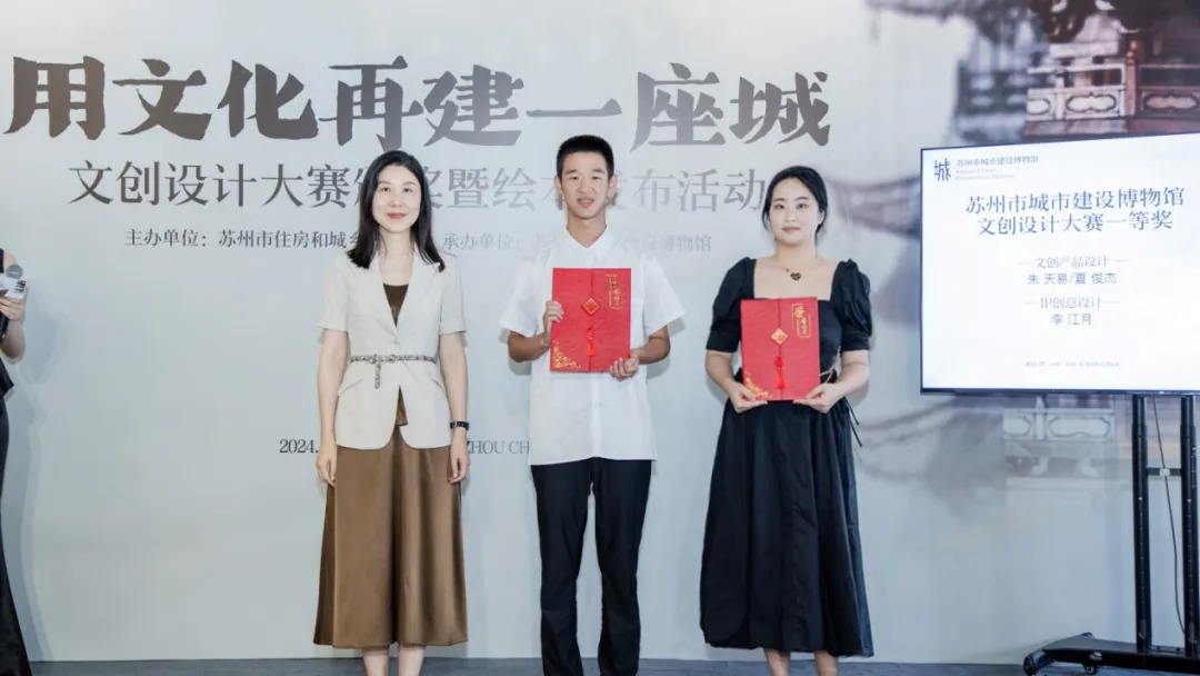 為進(jìn)一步挖掘蘇州城市建設(shè)精髓,更好傳播城建文化,7月25日,由蘇州市住房和城鄉(xiāng)建設(shè)局主辦、蘇州城建博物館承辦的“用文化再建一座城”文創(chuàng)設(shè)計(jì)大賽頒獎(jiǎng)暨繪本發(fā)布活動(dòng)在蘇州城建博物館禮耕堂舉行。 △ 蘇州市住建局黨組成員、副局長(zhǎng)錢(qián)毓靜致辭 ? 文創(chuàng)設(shè)計(jì)大賽自4月29日啟動(dòng)以來(lái),總計(jì)收到來(lái)自全國(guó)各地的原創(chuàng)設(shè)計(jì)稿件200多件,共評(píng)選出優(yōu)秀獎(jiǎng)20件、三等獎(jiǎng)6件、二等獎(jiǎng)4件、一等獎(jiǎng)2件(IP創(chuàng)意設(shè)計(jì)類(lèi)、文創(chuàng)產(chǎn)品設(shè)計(jì)類(lèi)各1件)。 △ 金螳螂文化資深平面設(shè)計(jì)師李江月(右) 獲得“IP創(chuàng)意設(shè)計(jì)”一等獎(jiǎng) IP創(chuàng)意設(shè)計(jì) 活動(dòng)現(xiàn)場(chǎng)還對(duì)文創(chuàng)設(shè)計(jì)大賽的優(yōu)秀作品進(jìn)行了展出,吸引眾多觀眾流連忘返。 這些作品有的將蘇州的傳統(tǒng)建筑元素融入日常用品當(dāng)中,有的以蘇州的民俗風(fēng)情為主題創(chuàng)作了精美的飾品,無(wú)不展現(xiàn)了蘇州城建文化的多元與包容。 蘇州城建博物館作為傳承和展示城市建設(shè)文化的重要陣地,始終致力于挖掘和推廣城市文化瑰寶。此次大賽不僅收獲了眾多優(yōu)秀作品,更重要的是激發(fā)了大眾對(duì)蘇州城建文化的關(guān)注與熱愛(ài)。 推開(kāi)一扇窗,認(rèn)識(shí)一座城。 蘇州城建博物館坐落于江蘇省蘇州市平江歷史文化街區(qū),占地面積約為 1600 平方米,以全國(guó)重點(diǎn)文物保護(hù)單位——衛(wèi)道觀前潘宅為基礎(chǔ)改建而成。 金螳螂文化項(xiàng)目團(tuán)隊(duì)以蘇州之窗為核心元素構(gòu)建了穿越古今的時(shí)光通道,貫穿起蘇州城建博物館城紀(jì)千載、現(xiàn)代蘇城、城市生長(zhǎng)、城市客廳、百館之城等主要展廳。 建館、造景、養(yǎng)心,于平江古巷里,把握城市生長(zhǎng)脈絡(luò)。 金螳螂文化深入研究蘇州城市建設(shè)歷程,將傳統(tǒng)展陳形式與高新多媒體展陳手法相結(jié)合,營(yíng)造出多角度、全方位的沉浸式觀展體驗(yàn),用創(chuàng)新與匠心續(xù)寫(xiě)歷久彌新的城市更新之美。